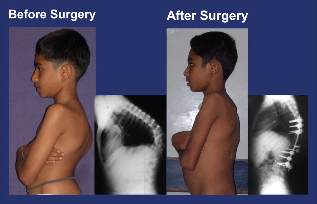 A 13-year-old boy presented with congenital kyphoscoliosis: